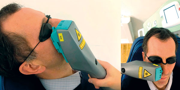 Die Handhabung des Gerätes erscheint relativ einfach und kann durch Schulungen seitens der Hersteller erlernt werden. Die Augen werden mit einer speziellen Schutzbrille abgedeckt, das IPL kommt nur an den Hautarealen um die Augen zum Einsatz (Abbildung 2). Auch die Augen des Anwenders werden mit einer Schutzbrille bedeckt.