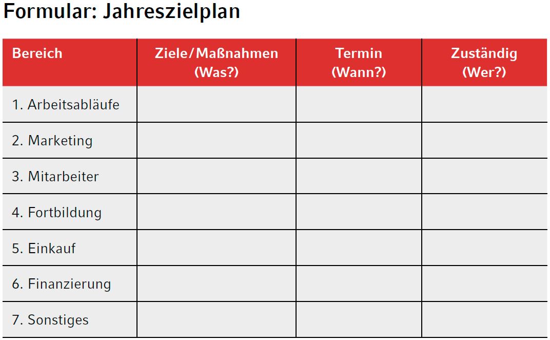 Jahreszielplan für Ihr Unternehmen