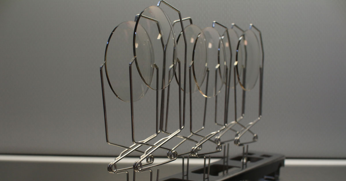 Wir haben erst letzte Woche eine Freiformstrecke von Optotec aus Wettenberg bekommen. Wir können bis zu einem Volumen von circa 50 Paar Gläsern am Tag fertigen, vom Einstärkenglas bis hin zum individuellen Gleitsichtglas, in jedem Index. Dann können wir auch die gewünschte Nachbehandlung durchführen: mit normaler HartcodeSuperentspiegelung, Lotusbeschichtung oder eben mit der Phototropie.