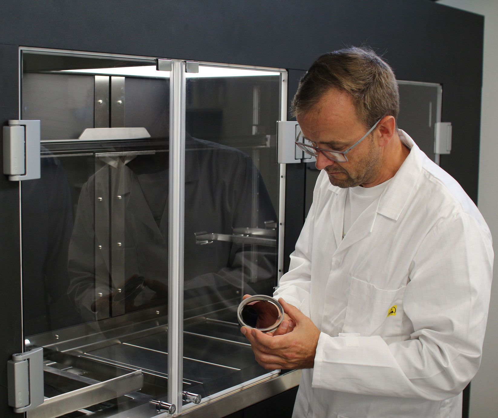 Da stand die Entscheidung an: was tun wir? Da flatterte mir eines Tages ein Angebot von Optotech über ein Freiformlab ins Haus. Das heißt erst mal grundsätzlich, Brillengläser selbst herstellen zu können. Im Laufe der Gespräche, die sich über zwei Jahre hingezogen haben, bot man uns dann eine Neuerung an. Wir haben jetzt die Möglichkeit in der Hartlack anlange zusätzlich eben diese phototrope Beschichtung mit aufzubringen. Es war dann ein Mehrpreis von circa 60.000 bis 70.000 Euro. Über ein oder zwei Jahr gerechnet, sind die phototropen Rohlinge unter dem Strich wesentlich teurer.