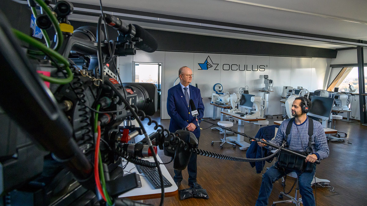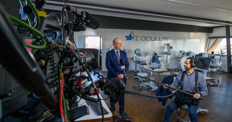 „Als ich hier angefangen habe, war Oculus die Messbrillenfirma. Heute sind wir wesentlich breiter aufgestellt“, eröffnete Geschäftsführer Rainer Kirchhübel die Presserunde in Wetzlar-Dutenhofen anlässlich des 125-jährigen Jubiläums der Oculus Optikgeräte GmbH. Der Einladung gefolgt waren vornehmlich Journalisten der augenoptischen und ophthalmologischen Fachpresse, selbst ein Fernsehteam vom US-amerikanischen Wissenschaftsverlag Bryn Mawr Communications war vor Ort und unterstrich damit, welche Strahlkraft Oculus in der Branche hat. Die Messbrille, ließ der Firmenchef in dritter Generation die Runde weiter wissen, sei allerdings nach wie vor sehr wichtig. Offenbar so wichtig, dass Chinesen auf der Opti eine Kopie einer Oculus-Messbrille ausstellen wollten, was aber im Vorfeld verhindert werden konnte. „Und auch eine Pentacam haben wir andernorts einmal als Kopie vorgefunden.“