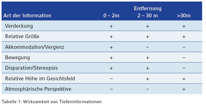 Stereopsis wird für die Erteilung der Fahrerlaubnis nicht vorausgesetzt. In den meisten Fällen befinden sich die Sehobjekte im Straßenverkehr in mittleren und großen Entfernungen vom Fahrzeugführer entfernt, für die eine querdisparate Tiefenwahrnehmung keine nennenswerte Rolle spielt. Ab einer Entfernung von 30 Metern ist der Nutzen der querdisparaten Tiefenwahrnehmung zu vernachlässigen. Hier werden sekundäre Tiefenmerkmale wie zum Beispiel Verdeckung oder relative Größe zur Abschätzung der räumlichen Tiefe herangezogen. Beim Einparken kann eine querdisparate Tiefenwahrnehmung nützlich sein, ist aber nicht die Voraussetzung für ein kollisionsfreies Einparken. Neuere Pkw verfügen zunehmend über Einparkhilfen, sodass die räumliche Tiefenwahrnehmung durch andere, zuverlässigere Informationen über den Abstand zum nächsten Fahrzeug ersetzt werden kann.