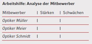 TeilenViele Augenoptiker sind zeitlich sehr stark in das Tagesgeschäft ihres Unternehmens eingebunden. Dennoch sollten Sie sich in regelmäßigen Abständen immer wieder einmal Zeit nehmen, um Ihr Geschäft auf den Prüfstand zu stellen, damit Sie im Wettbewerb nicht zurückfallen. Durch einen systematischen Stärken-Schwächen-Test können Sie mit geringem Zeitaufwand wichtige Verbesserungsmöglichkeiten für Ihr Unternehmen erarbeiten.