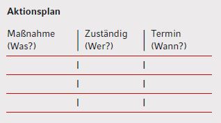 Damit den Erkenntnissen aus dem Stärken-Schwächen-Test auch Taten folgen, sollte am Ende Ihrer Überlegungen ein schriftlicher Aktionsplan stehen, der die Frage beantwortet: „Wer macht was bis wann?“. Ohne eine schriftliche Fixierung der erforderlichen Maßnahmen besteht die Gefahr, dass Ihre guten Ideen im Alltag schnell wieder in Vergessenheit geraten. Nur mit einem schriftlichen Aktionsplan können Sie Ihre Fortschritte regelmäßig kontrollieren und ein Vergessen einzelner Maßnahmen vermeiden.