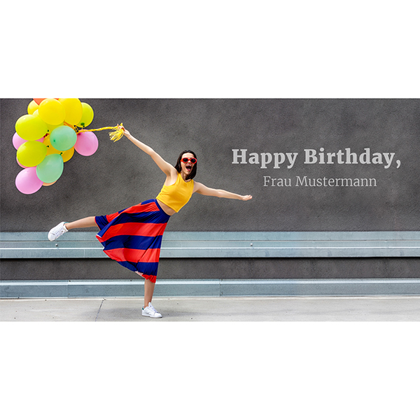 1.059,10 €Versenden Sie persönliche Geburtstagsgrüße an Ihre Kundinnen und Kunden. Individuell mit Ihrem eigenen Text oder komplett als Rundum-Sorglos-Paket mit tagesgenauem Versand. Bitte wählen Sie bei Ihrer Bestellung Ihre gewünschte Ausführung aus und schreiben diese in das Anmerkungen-Feld.
