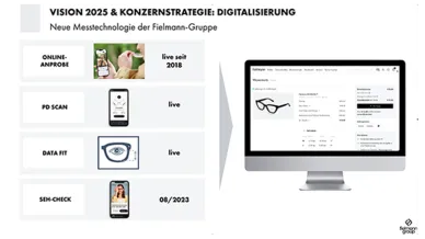 Fielmann bietet seit dem zweiten Quartel 2023 nun allen Interessierten die Möglichkeit einer Einstärkenbrille komplett online zu kaufen. Über die beiden Schlüsseltechnologien PD Scan und Data Fit werden dabei die Pupillendistanz sowie die Einschleifhöhe mit einem auf künstlicher Intelligenz basierendem Algorithmus ermittelt. Somit soll der Kauf einer Einstärkenbrille weiterhin in gewohnter Fielmann-Qualität gewährleistet werden.