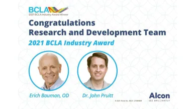 Für die Entwicklung der „Wassergradienten-Technologie“ wurden Erich Bauman und Dr. John Pruitt aus dem Alcon Forschungs- und Entwicklungsteam mit dem Industriepreis 2021 der BCLA ausgezeichnet.