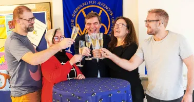 Nahmen den Jubilar Hartmut Glaser in die Mitte: (v.l.) Andreas Beck, Vera Pfeifer, Sabine Schlich und Gero Mayer.