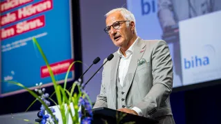 536 Hörakustikerinnen und Hörakustiker wurden nach ihrer erfolgreichen Abschlussprüfung in diesem Sommer bei "Deutschlands größter Gesellenfreisprechung eines Gesundheitshandwerks" erhoben. Eberhard Schmidt, Präsident der Bundesinnung der Hörakustiker (biha), sprach die frisch gebackenen Gesellinnen und Gesellen in Lübeck nach Handwerkstradition von den Pflichten und Rechten eines Auszubildenden los. „Sie haben sich für einen fantastischen, sehr innovativen Gesundheitsberuf entschieden und sich damit auch in die schnelle, flexible Welt des Fortschrittes eingereiht“, sagte Schmidt in seiner Rede. Die Veranstaltung fand am 20. Juli in der Lübecker Musik- und Kongresshalle statt und wurde zusätzlich via Livestream online übertragen.
