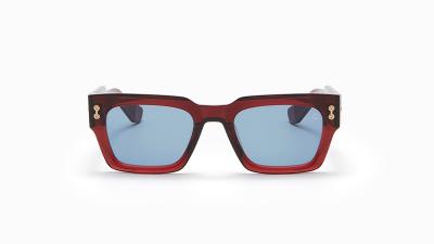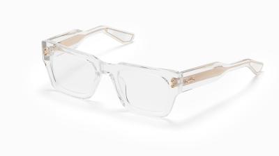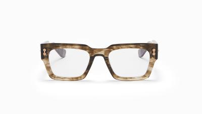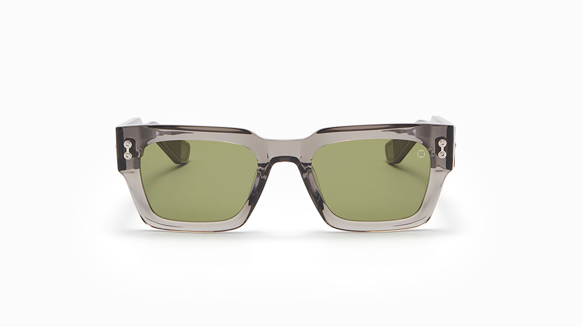 Die Modelle zeichnen sich durch eine neue Variante des klassischen Wellington-Rahmens aus. Besonders auffallend sind die breiten, durchsichtigen Bügel. Die Schrauben aus Titan bilden gemeinsam mit dem japanischen Acetat eine Melange aus charakteristischen Elementen. Im richtigen Licht lassen die scharf geformten Acetatwinkel kaleidoskopartig die Formen tanzen. Die Gläser der Cosmo mit ihrem Akoni-Logo und den speziell angefertigten Nieten greifen die markanten seitlichen Verzierungen der Brille auf.