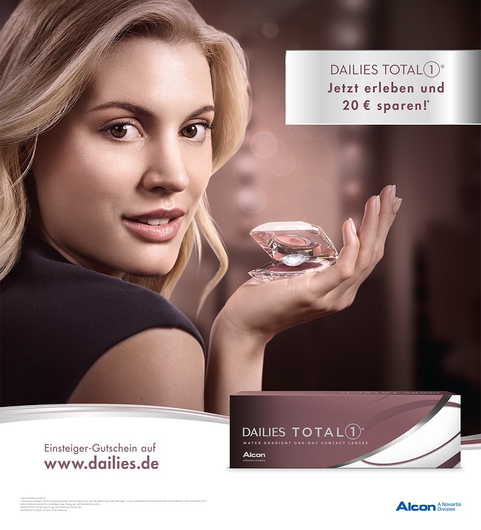 Alcon verlängert seine breit angelegte Media-Offensive mit über 400 zusätzlichen TV-Spots für Dailies Total1 bis Ende 2016. Die Werbung für die Kontaktlinsen startete bereits am 15. August dieses Jahres. Die Aktion umfasst TV-Werbung, Online-Werbung und hochwertige Dekorationsmaterialien für die augenoptischen Fachgeschäfte.