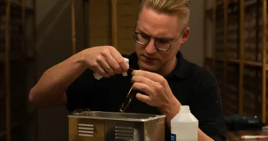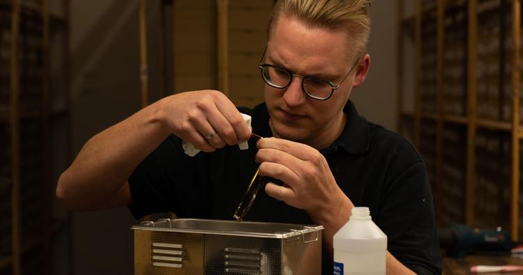 Ganz so abenteuerlich wie im Ludolfschen Lager sah es drei Jahre nach der Gründung bei Landario nicht aus. Oder doch? „Da war schon irgendwann der Zeitpunkt erreicht, dass wir uns auf unseren 20 Quadratmetern im Innovationszentrum vor lauter gebrauchten Fassungen kaum noch bewegen konnten“, berichtet Gründer und Geschäftsführer Dominik Maier, und kramt auch gleich Beweisbilder aus dem Jahr 2019 hervor. Da war das Aalener Start-up entschieden zu groß geworden für den zugeteilten Raum im INNO-Z (1). Aus der neuartigen Idee, gebrauchte Fassungen aufzukaufen, zu prüfen, zu reparieren und aufzuarbeiten – Landario bezeichnet es als „professionellen Handel mit gebrauchten Markenbrillenfassungen“ -, war ein tragfähiges Geschäftskonzept geworden. Die Zahlen sprechen für sich: Von 750 verkauften Fassungen im Jahr 2019 steigerte Landario den Absatz über 1.300 in 2020 bis auf 1.900 im laufenden Jahr. Tendenz: weiter steigend.