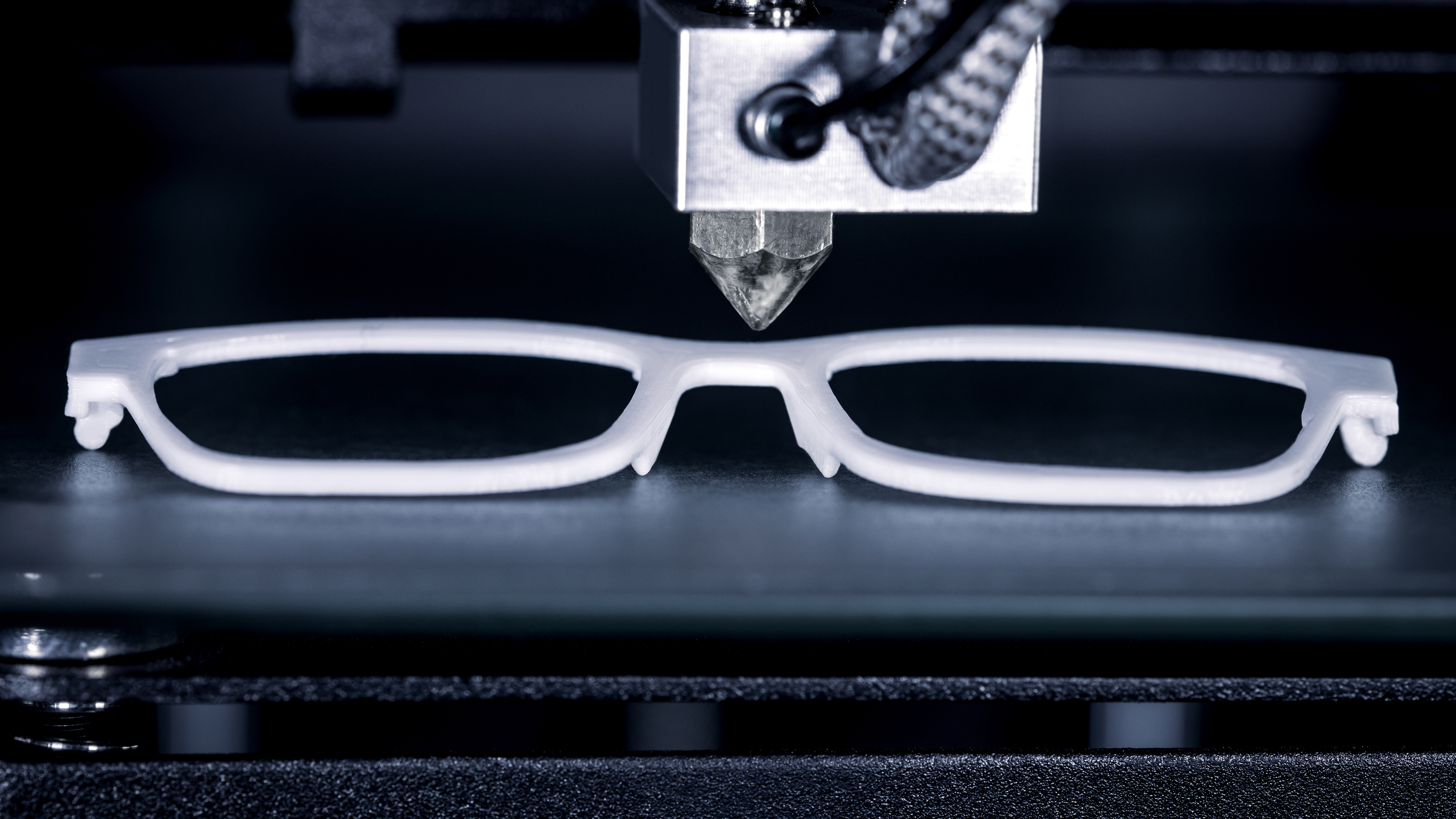 So sieht das fertige Mittelteil einer Brille aus einem Filamentdrucker aus. Bei Schönauer stellt das eigens angeschaffte Modell inzwischen allerdings Karabiner her.
