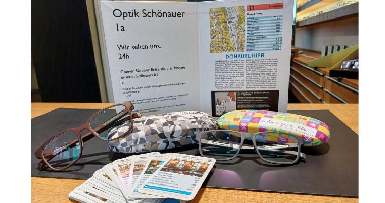 Seine Kreativität stellt Schönauer nicht nur mit seiner eigenen Fassungskollektion unter Beweis. So designte er auch Brillenetuis in vier verschiedenen Mustern, darunter eines mit dem Ingolstädter Wappen sowie ein Schanzer-Etui („Schanzer“ ist der Spottname, den die Ingolstädter von den Bewohnern der benachbarten Dörfer im 16. Jahrhundert verpasst bekamen, als sie ihre Stadt zur „bayerischen Landesfestung Ingolstadt“ ausbauten; Anm. d. Red.). Während der Corona-Zeit entwickelte Schönauer zudem ein Quartett und spendete die gesamten Einnahmen an den Round Table in Ingolstadt. Auch ein Teil der Einnahmen aus dem Verkauf der Uli-S.-Kollektion geht regelmäßig an den ortsansässigen Service Club.