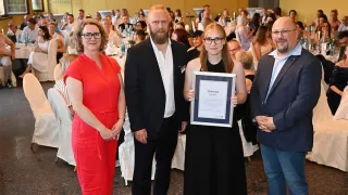 Im Anschluss wurden herausragende Leistungen besonders gewürdigt. Über Urkunden, Geldpreise und Auszeichnungen freuten sich Nick lvo Wulff, Leon Dick und Sarah Quere. Nick Ivo Wulff hat das beste Gesamtergebnis im Handwerkskammerbezirk Frankfurt-Rhein-Main sowie das beste praktische Ergebnis in ganz Hessen. Leon Dick erhielt eine Urkunde und einen Geldpreis für das beste Gesamtergebnis im Handwerkskammerbezirk Wiesbaden sowie den Azublick-Preis der Firma Zeiss für das beste Prüfungsergebnis an der Heinrich-Kleyer-Schule in Frankfurt. Sarah Quere bekam den Azublick-Preis der Firma Zeiss für das beste Prüfungsergebnis an der Max-Eyth-Schule in Kassel. Zudem überreichte man ihr einen Preis für das beste Gesamtergebnis im Handwerkskammerbezirk Kassel.