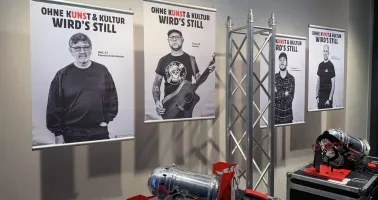 "Axt Optik und Akustik" aus Wesel ist bekannt für ausgefallene Schaufenstergestaltungen und setzt diese auch in Corona-Zeiten weiter um. Unter dem Motto „Ohne K(uns)t & Kultur wird’s still“ hat Geschäfts-Eigner Dirk Vorpahl Fotos von Kulturschaffenden aus der Stadt für alle Passanten sichtbar in Szene gesetzt.