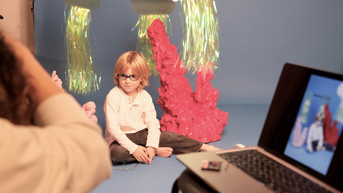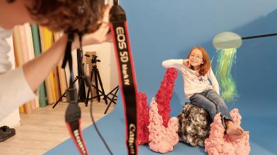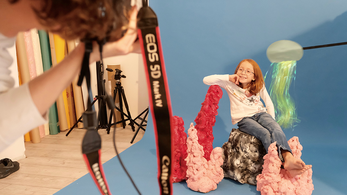Diesmal kam es anders als gedacht. Denn eigentlich wollten wir am Adriastrand im Süden Italiens eine Auswahl der neuesten Korrektions- und Sonnenbrillen für Kinder und Jugendliche fotografieren. Bis ganz unerwartet der Novemberregen kam (in Apulien regnet es im Herbst eher selten)! Wir mussten improvisieren und verlegten das Fotoshooting in das Atelier unser Fotografin. Das Tolle: Kinder und Eltern zogen ohne zu zögern mit! So verbrachten wir zwei „sonnige” Tage im trockenen, warmen Studio. Im Handumdrehen wurden Strand und Meer aus bunten Kartonagen und Kunststoffschaum „gezaubert”, so dass die Kinder zwischen leuchtenden Korallen, schillernden Quallen und bunten Fischschwärmen in imaginäre blaue Tiefen abtauchen oder auf kühnen Wellen reiten konnten.