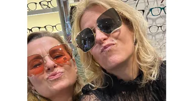 Good Vibes Only: Selfie von Yvonne Schaefers, Geschäftsführerin von Haus der Optik Lankwitz (rechts), und einer Kundin während ihres Laden-Events.