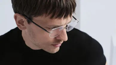 So langsam nähert sich unsere Visite dem Ende. Während die fertigen Gläser vollautomatisch in der Verpackungsanlage für den Versand vorbereitet wer den, steht für andere hier der letzte Arbeitsschritt an: das Einsetzen in die Fassung. Einige Kunden haben ihr eigenes Fassungslager bei Rodenstock in Klattau und werden mit WhiteLabelGläsern versorgt. Bis zu 150 Brillen pro Stunde werden für diese Firmen verglast, aber auch traditionelle Augenoptiker können hier ihre Kundenbrillen fernranden und die Gläser einsetzen lassen. Wie lange es vom Bestelleingang bis zum Aus liefern braucht, will ich abschließend von Karel Hithawissen. „Das kommt ganz darauf an, wie der Auftrag gestaltet ist. Ein biometrisches Glas mit allen Verede lungen dauert bis zu vier Tage, ein einfaches Lagerglas geht schon nach wenigen Stunden raus an den Kunden.
