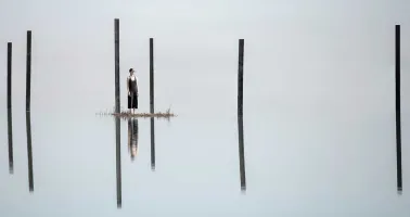 Getreu dieser Quintessenz, “Neomadeinitaly”, stellt Blackfin seine Titanfassungen im eigenen Land her: "Wir sind Italiener und arbeiten in Italien. Wir respektieren den Menschen, die Umwelt und sind stolz auf unsere Geschichte." Um dabei selbst im Gleichgewicht zu bleiben, müsse man solide und sich seiner Wurzeln bewusst sein, heißt es weiter. Diese Solidität drückt sich im Kampagnenmotiv durch die Lärchenholzpfähle, die als vertikale Elemente aus dem Wasser ragen, aus. Ein Land-Art-Kunstwerk, das für die stilisierte Darstellung der "Bricole", der dicken Pfähle, die die befahrbaren Wässer der Kanäle anzeigen, steht.