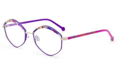 Die Front des Modells CCS147 fällt durch eine Cateye-Form mit Blattgoldeinsätzen und Farbkontrasten auf. Die Pantofassung CCS146 wiederum ziert ein einheitliches Druckmuster auf der Front und den Bügeln - in warmen, kalten oder neutralen Farbkombinationen. Das Modell CCS145 hat eine sechseckige Front mit Bügeln, in die Seide eingearbeitet wurde. Die Dassung gibt es in hellen Türkis- und Güntönen, oder mit intensiveren roten Tönen, auf denen sich bunte Federn wiederfinden.