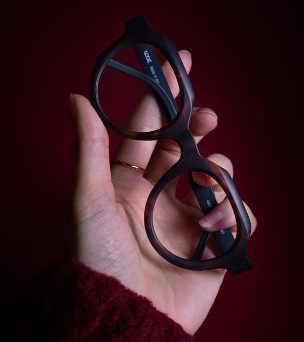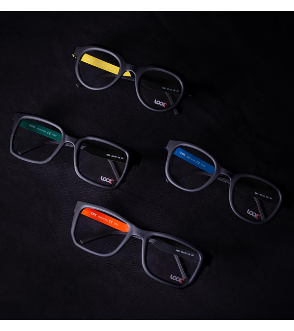 Auf den Vorderseiten der Fassungen dominieren Havanna, Blau und Schwarz. Der rechte Bügel erscheint in der gleichen Farbe wie die Front, beim linken Bügel haben sich die Designer für Kanariengelb, Tiefblau, Hellgrün oder Hellorange entschieden, um eine Asymmetrie entstehen zu lassen. Alle Fassungen von Look werden in der eigenen Manufaktur in Italien hergestellt.