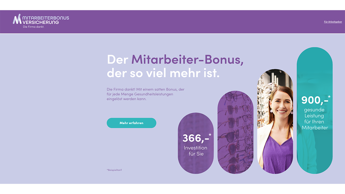 Die Mitarbeiterbonusversicherung soll sich für Arbeitgeber wirtschaftlich lohnen: Demnach fallen bei einem Gesundheitsbudget von 900 Euro pro Mitarbeiter nur 366 Euro pro Jahr an.