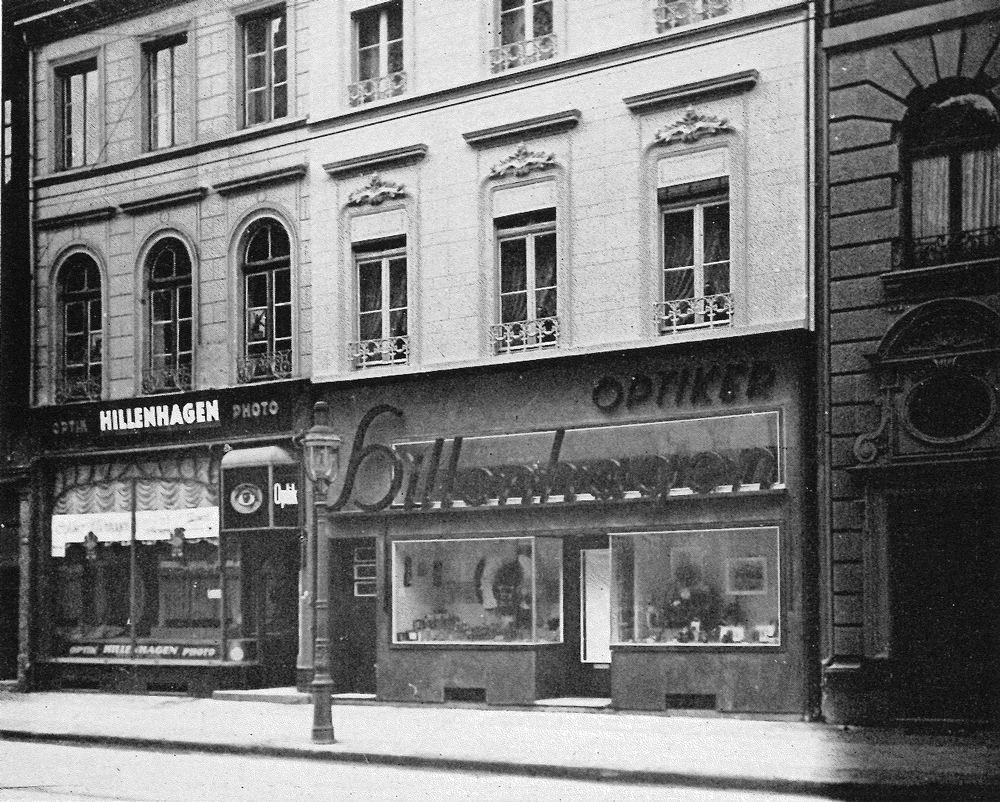 In Krefelds Stadtzentrum betreibt Johann Nievejahn 1827 eine Blechschmiedewerkstatt am Schwanenmarkt. Dort produziert er neben Geräten und Werkzeugen für die Krefelder Seidenindustrie auch erste optische Geräte. Am 1. September 1867 übernimmt der „Optikus und Mechanikus“, so die damalige Berufsbezeichnung, Fritz Hillenhagen die Werkstatt. Neben Messgeräten, elektrisch-technischen und chemischen Erzeugnissen sowie Werkzeugen für die Krefelder Seidenindustrie fertigt Hillenhagen auch Brillen, Lupen, Kneifer, Lorgnetten und Operngläser an. 1877 erhält er das Diplom des Landwirtschaftlichen Vereins für Rheinpreußen und 1880 die preußische Staatsmedaille Düsseldorf.