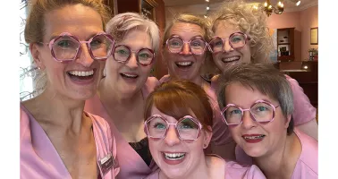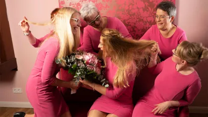 Verspieltheit, Spaß und Emotionalität – das könnte tatsächlich das Leitmotiv sein, nach dem der Alltag bei Mien Brill funktioniert. Greifbar dokumentiert etwa in den Social-Media-Accounts des Betriebs: Fotos zeigen die Brillis mit pinken Luftballons am Maifeiertag, die Brillis in altrosa Charleston-Kleidern beim Hagenower Altstadtfest, die Brillis mit einem Gläschen Rosé, die Brillis mit lachsfarbenen Baskenmützen, die Brillis mit pinken Donuts beim zehnten Geburtstag der Mien-Brill-Filiale Lübtheen 2021 – und gerne zubbelt die eine der anderen Kollegin da an den Haaren, wird dafür bei der Draisinen-Tour vom Sitz gedrängelt oder bekommt von der Inhaberin die per Leselupe vergrößerten Zähne gezeigt. Dass man in diesem Team übrigens keinen „Ken“ findet, sei nicht beabsichtigt, aber auch nicht verwunderlich. „Das würde wohl kein Mann aushalten“, glaubt Brüch, „wenn ich eine Stellenanzeige schalten würde - ein Bewerber bekäme ja Zustände, wenn er sich bei Facebook vorab über uns schlau macht“.