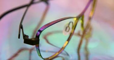 „Um das zehnjährige Jubiläum von Ad Lib gebührend zu feiern, wollten wir ein Modell kreieren, das wirklich auffällt. Während einer meiner Reisen nach Japan lernte ich die Horitech-Produktpalette kennen, die in unseren Fabriken hergestellt wird“, erklärt Nicolas Berne, Ad Lib-Designer. Diese für die Medizinindustrie (Augenchirurgie) bestimmten Titanprodukte haben eine sehr spezifische und auffällige Farbgebung. Mir war klar, dass ich diese Farbe auf eine Brille übertragen wollte. So entstand die Idee zu Bria.”