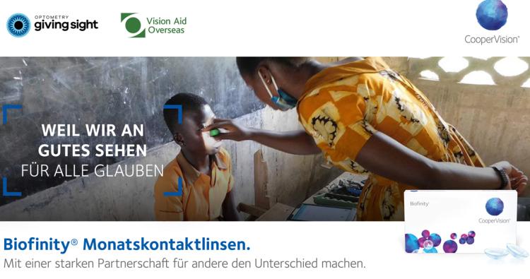 Mit der neuen, länderübergreifenden Kontaktlinsen-Kampagne „Weil wir an gutes Sehen für alle glauben“ will CooperVision DACH seit Ende August mit der Premium-Kontaktlinsenfamilie Biofinity auch dort zur Augengesundheit beitragen, wo den Menschen eine Versorgung normalerweise erschwert ist. In Partnerschaft mit den Organisationen „Optometry Giving Sight” und „Vision Aid Overseas” sollen seit Juni 2022 bis Mai 2023 50.000 Britische Pfund (aus den Biofinity-Gewinnen) dabei helfen, Kindern und Erwachsenen in Ghana eine augenärztliche Versorgung zu ermöglichen. Die Initiative ermöglicht eine augenmedizinische Versorgung von circa 16.000 ghanaischen Kindern und Erwachsenen. Darüber hinaus sollen Medikamente gegen häufige Augenkrankheiten, Überweisungen für weiterführende Behandlungen und erforderliche Sehkorrekturen bereitgestellt werden.