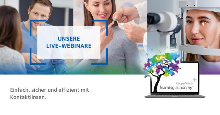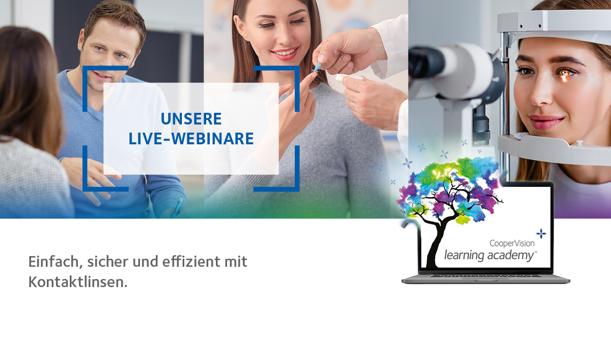 Anmelden können sich Interessierte über die CooperVision Learning Academy. Ab sofort werden dort auch Aufzeichnungen aller angebotenen Webinare für einen kurzen Zeitraum hochgeladen. Wer eines der angebotenen Webinare nicht wahrnehmen kann, hat also auch später noch die Möglichkeit, sich die Inhalte auf der E-Learning-Plattform anzusehen.