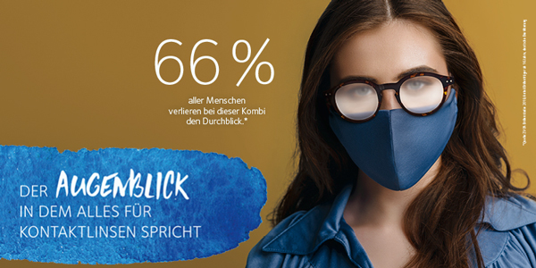 Unter dem Motto „What the fog“ läuft die neue Quartalskampagne von Weichlinsenhersteller CooperVision, mit der fehlsichtige Personen über Social-Media-Postings für die Kontaktlinse gewonnen werden sollen. Hatte doch eine Umfrage unter 150 Brillenträgerinnen und -trägern ergeben, dass sich jede und jeder dritte befragte Person für Kontaktlinsen als Lösung für das Beschlagen der Brille beim Tragen einer Maske interessiert. Folglich lautet die Kampagnenbotschaft der Eppertshausener: „Kontaktlinsen beschlagen nicht!“
