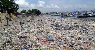 Der Plastikmüll sammelt sich am Strand von Muncar in Indonesien.