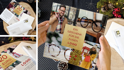 Gold spielt nicht nur, aber besonders zu Weihnachten eine große Rolle; als Lametta auf und als Geschenk unter dem Christbaum. In diesem Jahr ist es möglich, die Grußkarten und Mailings mit einer Goldfolie zu personalisieren und damit einen zusätzlichen festlichen Effekt für die individuellen Weihnachtswünsche des Augenoptikers zu schaffen. Die edelste aller Farben strahlt zeitlose Eleganz aus und sorgt für eine besinnliche Stimmung: Diese besondere Werbung fällt nicht nur auf, sie bleibt auch in Erinnerung.