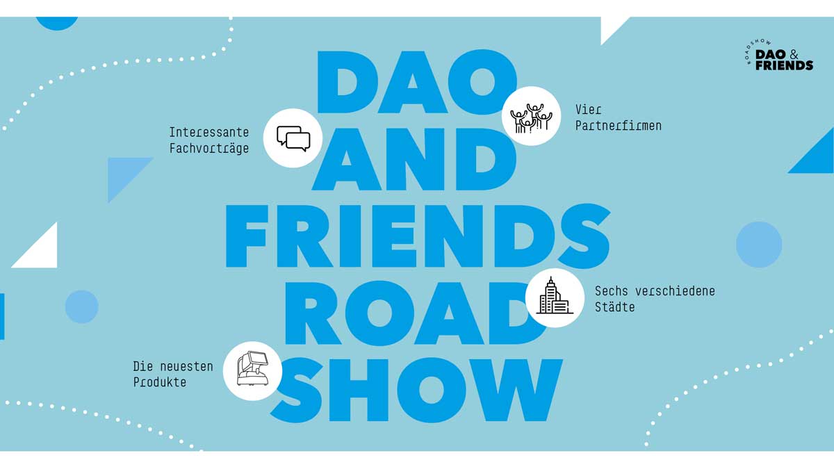Schließlich ist die DAO auf ihrer Roadshow nicht alleine unterwegs, mit dabei sind auch IPRO, die Werbeagentur to.eyes und Thema Optical. Den Anfang macht am 20. September der Stop im Hotel Waldesruh am See in Aumühle bei Hamburg, weiter geht es über Potsdam (22. September, Kongresshotel Potsdam), Gelsenkirchen (27. September, Heiner’s Parkhotel) und Wiesbaden (29. September, Mercure Hotel) bis nach München (11. Oktober, Novotel München City). Den Abschluss der Tour bildet dann die DAO-Zentrale in Mühlacker am 13. Oktober.