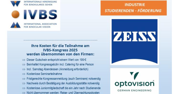Erstmals ist durch Industrieförderung (Zeiss, Optovision) 30 Studierenden der kostenlose Kongressbesuch ermöglicht.