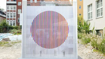 Im Rahmen des Spatenstichs konnten die Besucher anhand eines Modells bereits das Licht- und Farbspiel der zukünftigen Fassade den neuen Eingangsgebäudes im Maßstab 1:10 erleben. Sie wird aus einer hochtransparenten Verglasung und einem kreisförmigen Mosaik aus mundgeblasenem Farbglas mit elf Metern Durchmesser bestehen. Vertikale, tragende Aluminiumrippen halten das Glas und sollen wichtiger Bestandteil des optischen Experiments sein, weil sie je nach Blickwinkel einzelne Farben aus dem Farbkreis spiegeln, hervorheben oder verdecken sollen.