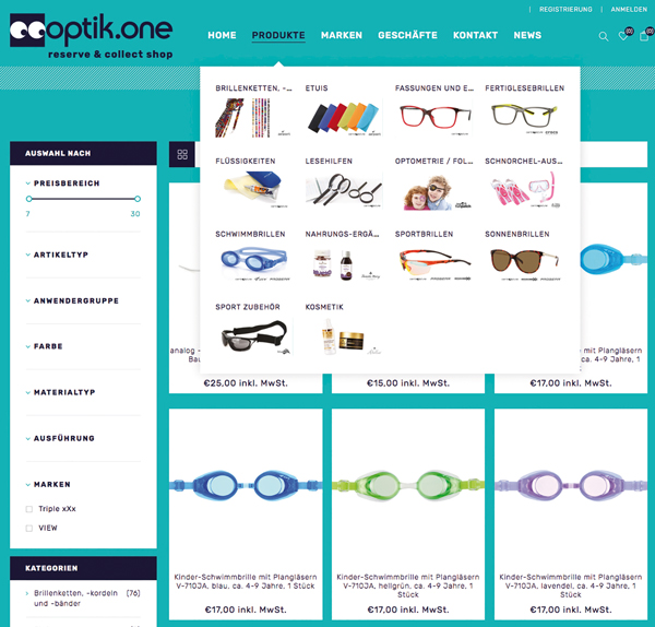 „Reserve“ steht für das Reservieren, denn der Kunde kann auf optik.one aus einem großen Sortiment die Artikel seiner Wahl heraussuchen. Das Sortiment umfasst über 1.000 Produkte, darunter Brillenfassungen, Fertiglesebrillen, Brillenetuis, diverse Accessoires wie Brillenketten oder -kordeln, dazu Sport-, Sonnen- und Taucherbrillen. Abgerundet wird das Angebot mit Nahrungsergänzungsmitteln, die speziell auf die Augen abgestimmt sind, und Augenkosmetik. Kurzgefasst, hier findet der Kunde alles rund um die Augen. Und das Sortiment wird weiter wachsen!
