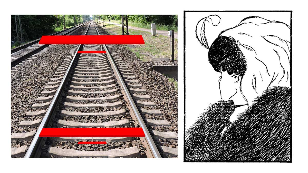 Das klassische Kippbild "Alte Frau - Junge Frau" des Psychologen Edwin Boring (1930) sowie die "Täuschung auf den Schienen" des Psychologen Mario Ponzo gehen mit der Wanderscheune auf Tour.