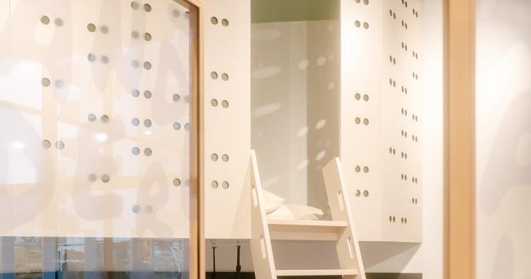 Ein Highlight nicht nur für Kinder: Das Indoor-Baumhaus mit Lichtauslässen in Brillenfassungsoptik. Im „Wonderland“ werden kleine Kunden versorgt, entweder mit einer Brille oder mit Spielmöglichkeiten, wenn die Eltern im Beratungsgespräch sind.