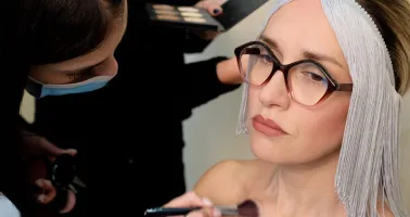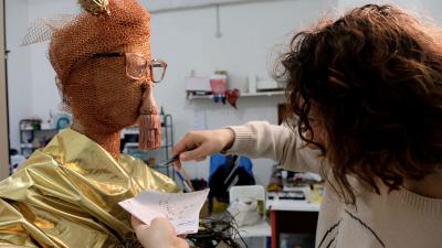 So portraitierte Fotografin Carmen Mitrotta Gesichter, Körper und Emotionen in fantasievollen Kostümierungen. Parodistisch, grotesk, humorvoll spielen ihre kunstvollen Inszenierungen aktueller Brillenneuheiten mit der Transformation und Identität fiktiver Figuren – interpretiert von der Schauspielerin Maria Lucia Amato und ihrem artifiziellen Alter Ego.