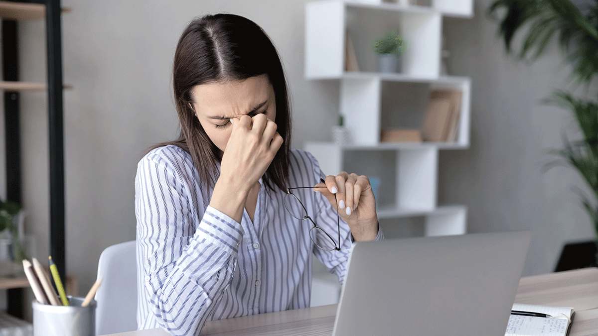 Verminderter Lidschlag, Strahlung des PC-Monitors und oft auch schlechte Luft begünstigen trockene Augen.