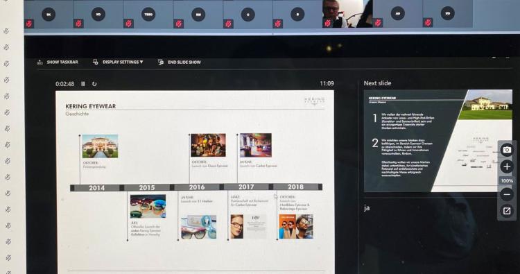 Pünktlich um 9 Uhr starteten am 22. Januar die ersten Fachvorträge der Unternehmen aus den Bereichen Fassungen, Geräte, Kontaktlinsen, Marketing und Dienstleistung. Jeweils 20 Minuten Zeit hatten die Firmen, um über ihre Neuigkeiten zu informieren und Fragen der Augenoptikerinnen und Augenoptiker zu beantworten. Letztere hatten die Möglichkeit, immer zeitgenau den für sie interessanten Vorträgen der Online-Präsentation beizutreten und so frei zu entscheiden, welche Themen für sie relevant sind.