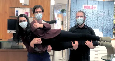 Das Low-Vision-Team bei Optiker Schulz in Oldenburg: André Siebler (l.), Nadine Pargmann und Florian Jakob befassen sich leidenschaftlich mit dem Thema vergrößernde Sehhilfen.