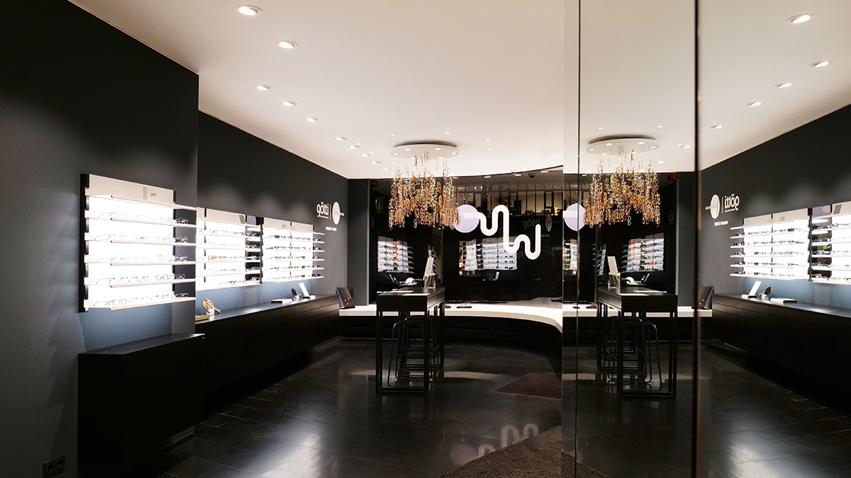 Genau wie die Modelle am Kronleuchter, den das Design-Team von Götti beigesteuert hat. Jeder Götti-Store hat seine eigene Version dieses Kronleuchters, immer ein wenig anders. „Die Brillen wirken so etwas museal, aber schließlich geht es auch um sie“, erklärt Thomas Frischknecht, Design Development Manager von Götti. Die Idee hinter dem besonderen, auf die Marken-DNA von Götti abgestimmten Interiordesign und der Deckeninstallation in der Augenweide sei es gewesen, bestehenden und potenziell neuen Kunden frische visuelle Anreize zu geben, ohne die eigene Identität und Historie aufzugeben. Und so das Beste aus beiden Welten zu präsentieren.