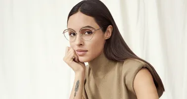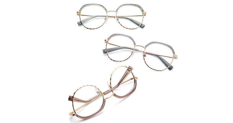 Die klassische Panto-Form mit facettiertem Augenrand strahlt betont feminine Eleganz aus. Eine edle Kombination aus goldschimmerndem, feinstem Edelstahl und transparentem Acetat in einem warmen Farbton, das die Oberlinie akzentuiert und den Blick auf den metallischen Augenrand freigibt.