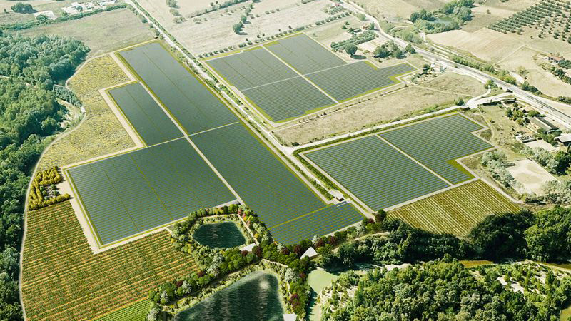 Auf den Anbauflächen sollen vor allem einheimische Arten angebaut werden, darunter Olivenbäume, Birnentomaten und Honigpflanzen. In den Betriebsrestaurants sollen natürliche Lebensmittel aus der Anlage zusammen mit denen aus den neuen Kulturen rund um den Solarpark eingeführt werden. Dazu arbeitet EssilorLuxottica mit dem lokalen Unternehmen Tenuta Fragassi zusammen. Bereits 2022 hatte der Konzern gemeinsam mit dem italienischen Koch Davide Oldani das Programm Eyes on Food ins Leben gerufen. Ziel: eine gesunde und verantwortungsvolle Ernährung am Arbeitsplatz. Die gesamte Anlage soll Anfang 2025 fertiggestellt sein.