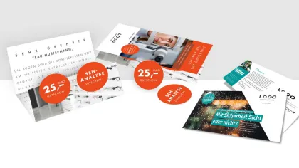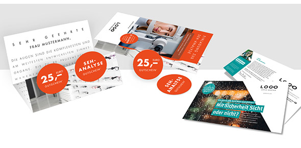 Maßgeschneiderte Lösungen für den Augenoptiker, wenn es um Marketingaktivitäten geht. Sie wählen das Motiv und die Zielgruppe aus und wir kümmern uns um den Rest. Jede Aktion ist natürlich individuell an Ihre Bedürfnisse anpassbar. Textänderungen, Farbanpassungen oder auch die Höhe und Gültigkeit der Gutscheine können nach Ihren Wünschen verändert werden.