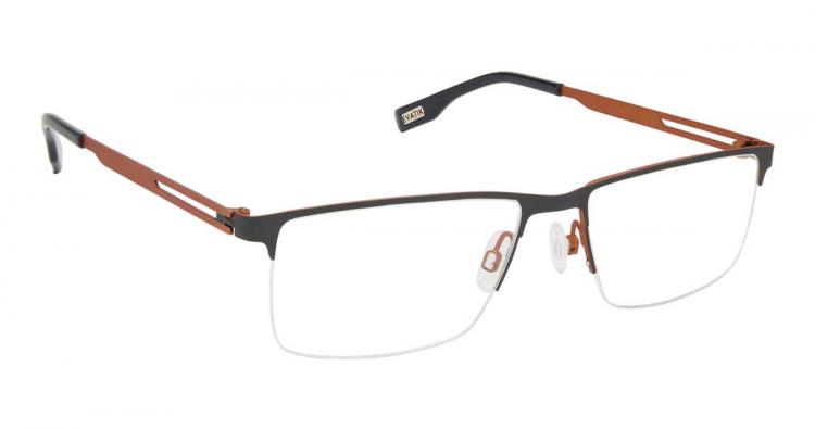 Die rechteckige Nylor-Fassung besticht mit den vom Sport inspirierten Aussparungen an den Bügeln. Auch das gestapelte Design mit einer leichten Wölbung am Scharnier und die Farbakzente an den Seiten sorgen für einen echten Hingucker. Das Modell ist in Schwarz-Rot, Marine-Blau und Grau-Orange erhältlich.